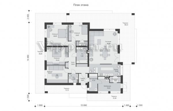 | Размеры дома: | 15.89м×14.48м |